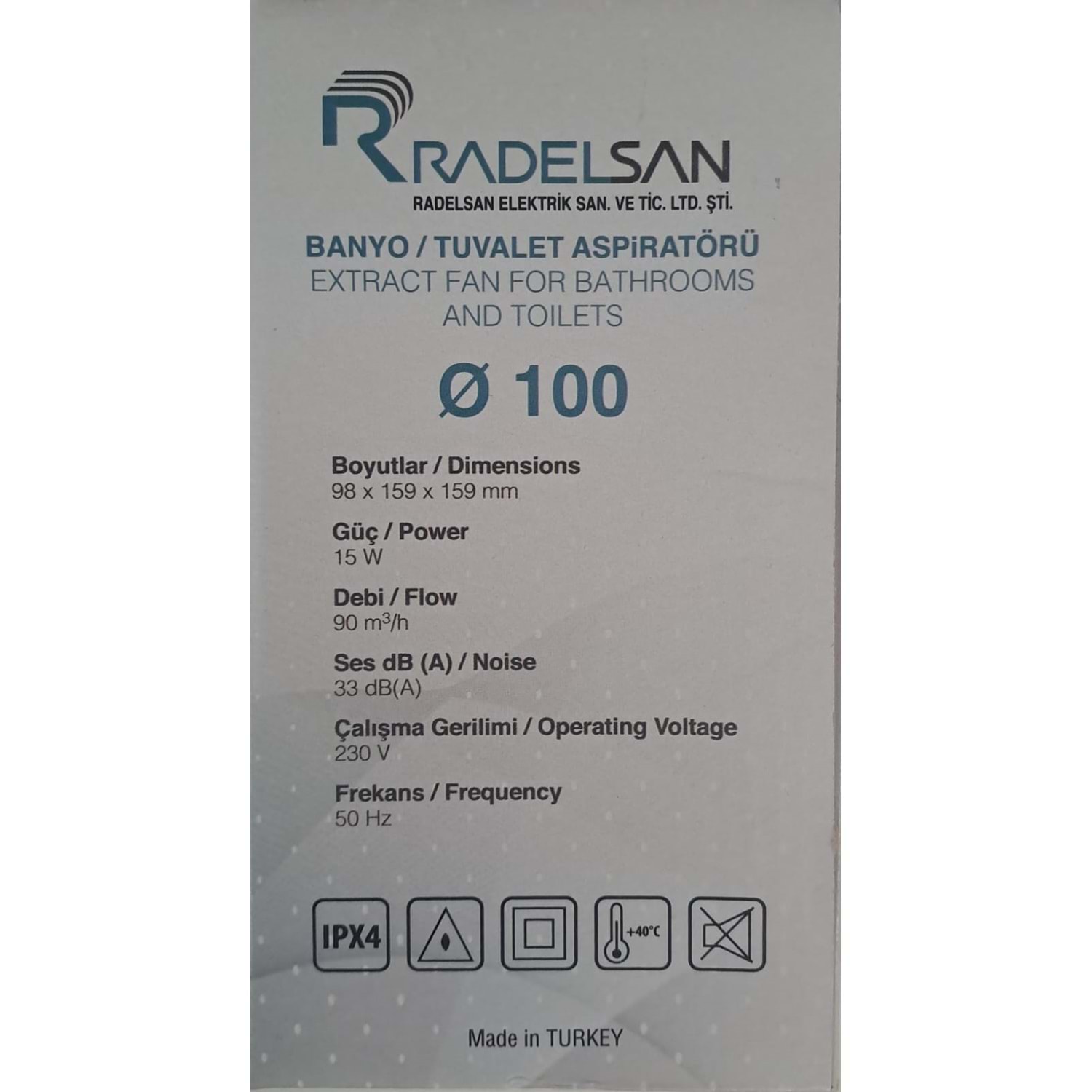 RADELSAN HAVALANDIRMA FANI / BANYO VE TUVALET ASPİRATÖRÜ 100 LÜK